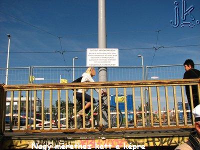 kerékpáros, hanem az, hogy több villamost megvárva nem sikerült ugy